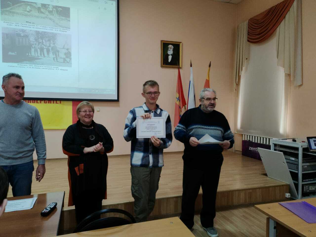 Координатор ТМАШ ПОЛЕ, старший преподаватель Андрей Викторович Лагуткин и доцент Сергей Владимирович Богданов (исполнитель проекта) провели награждение Сертификатами участников проекта – студентов и сотрудников исторического факультета. За многолетнее сотрудничество и участие в проекте была отмечена и.о. директора Музейно-образовательного комплекса ТвГУ Дарья Дмитриевна Беляева.