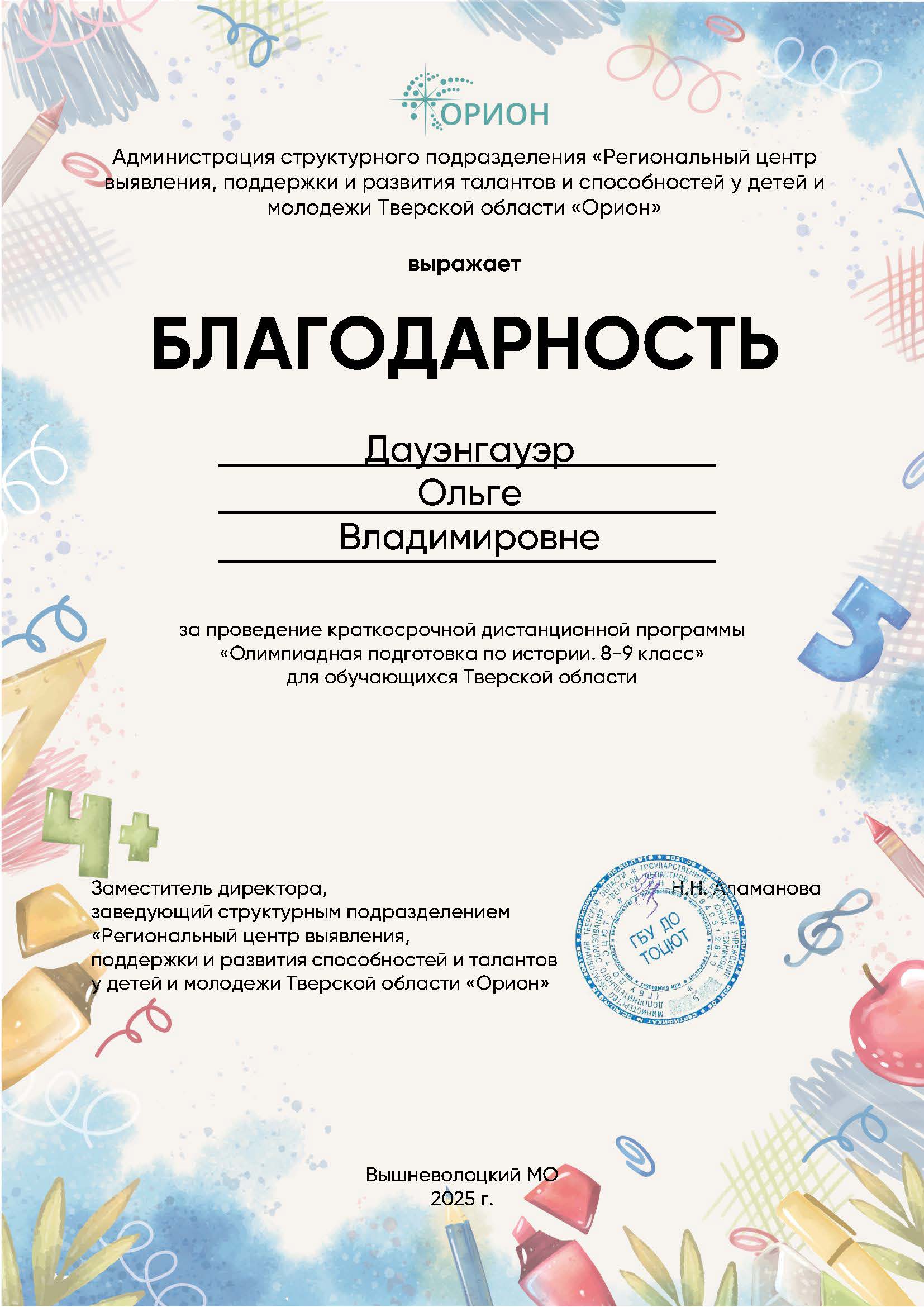 Завершились курсы подготовки к муниципальному этапу Всероссийской Олимпиады школьников по истории 8-9 и 10-11 классов. Доцент кафедры отечественной истории, к.и.н. О.В. Дауэнгауэр на протяжении нескольких недель разбирала с учениками школ Твери и области олимпиадные задания, рассказывала об особенностях подготовки к таким работам как историческое эссе и проект. Подготовка проходила в дистанционном формате на базе "Регионального центра поддержки и развития талантов и способностей у детей и молодежи Тверской области "Орион".