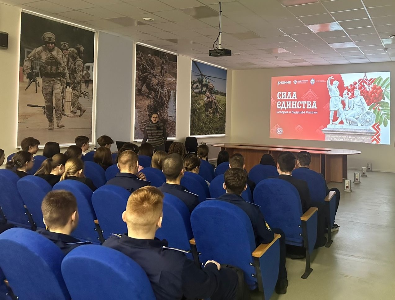 Доцент кафедры отечественной истории, лектор российского общества «Знание», к.и.н. О.В. Дауэнгауэр провела лекцию «Сила в Единстве» для учащихся 10-х классов в Центре образования имени Александра Атрощанка. В ходе лекции освещалась основные исторические предпосылки и значение Дня народного единства, рассказывалось о ценностях многонационального народа России.