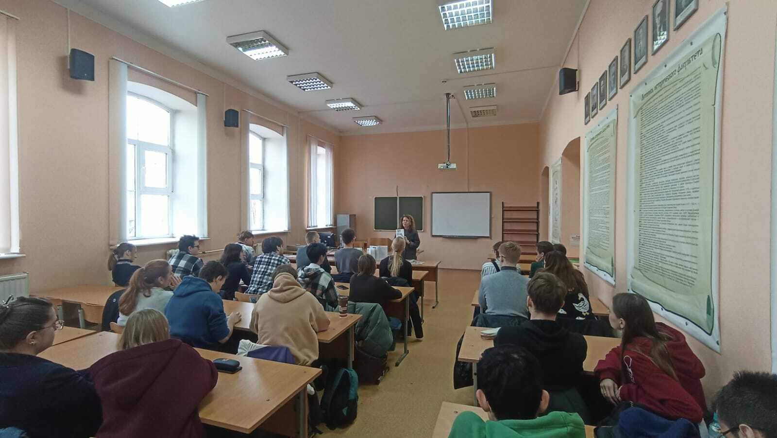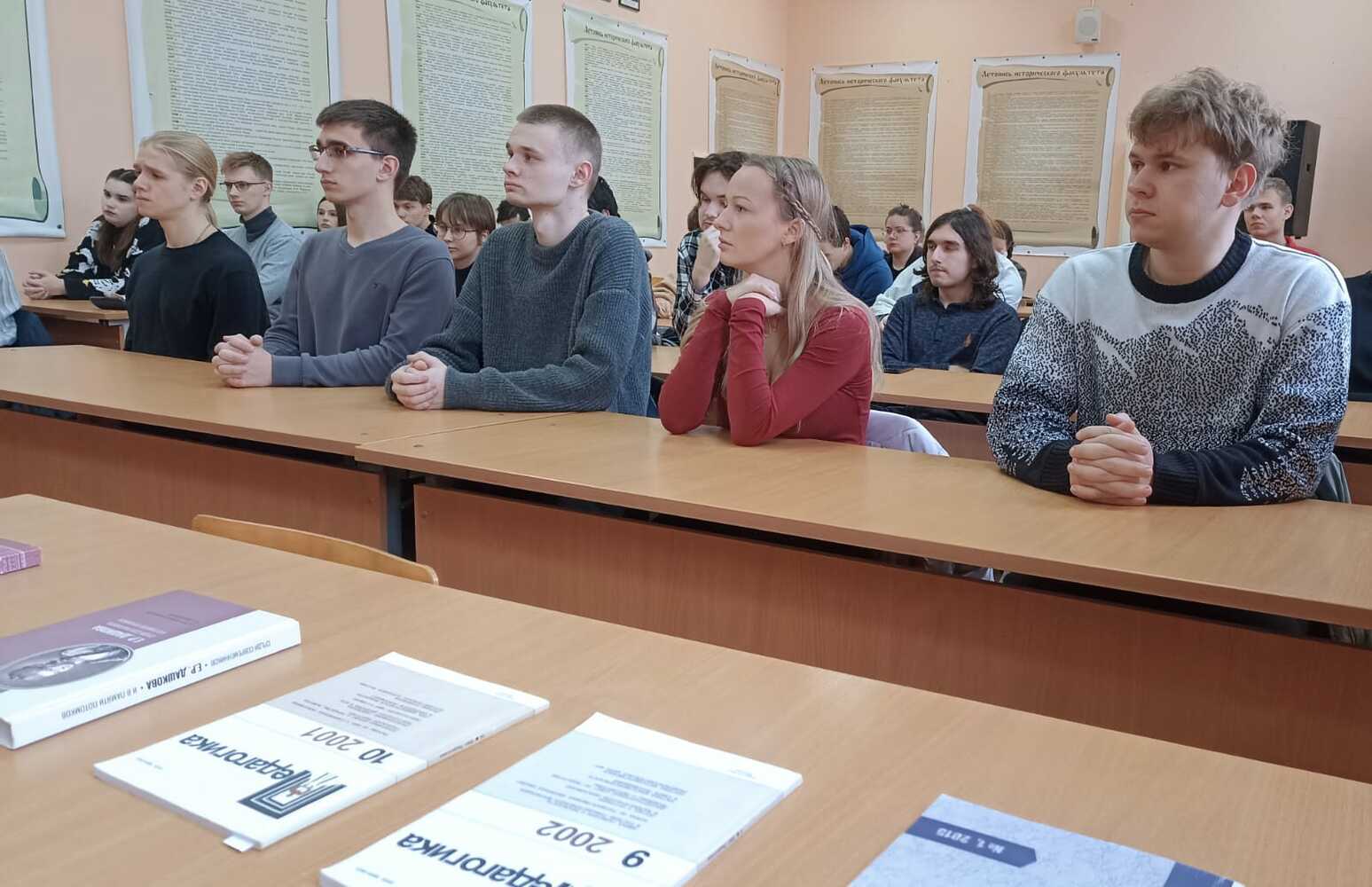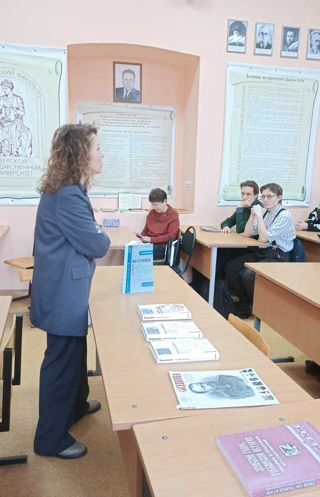 19 ноября в День преподавателя высшей школы и в рамках Недели исторического факультета состоялась встреча преподавателей кафедры всеобщей истории со студентами, посвящённая тематическому разделу о женском образовании в научном журнале "Вестник ТвГУ. Серия: История" к 155-летию женской учительской школы им. П.П. Максимовича. Анна Валерьевна Белова, Наталья Александровна Лучинина и Ольга Игоревна Лисицына обсудили со студентами традиции женского образования в истории России и её отдельных регионов, роль Тверской женской учительской школы П.П. Максимовича в развитии женского образования в Тверском регионе. Студенты 3 курса направления "История" приняли участие в обсуждении проблем женского образования в России в прошлом и настоящем и ознакомились с предложенной научной литературой по обсуждаемой тематике.