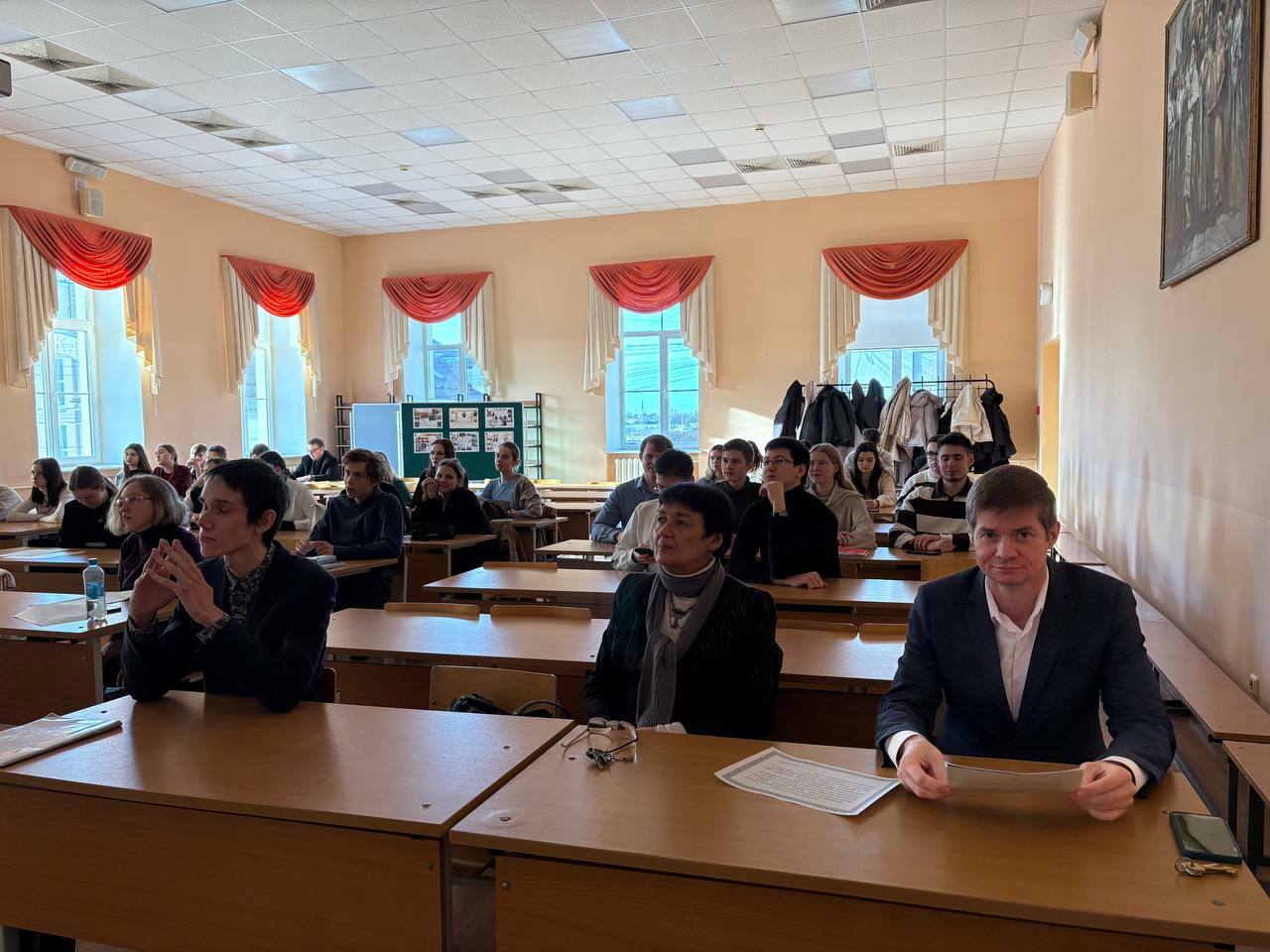 В обсуждении темы приняли участие студенты направления «Документоведение и архивоведение» и «Сервис», преподаватели кафедры архивоведения, историографии и документоведения − доцент Инна Геннадьевна Серёгина, доцент Кирилл Михайлович Свирин, ассистент Олеся Николаевна Родивилова, ассистент Николай Александрович Дмитриев. Состоялся обмен мнениями об особенностях структуры архивных фондов, видовом и тематическом разнообразии комплекса документов учительской школы П.П. Максимовича и их информативных возможностях. Студенты получили рекомендации по работе с описями дел и документов и принципам публичного представления результатов исследования.