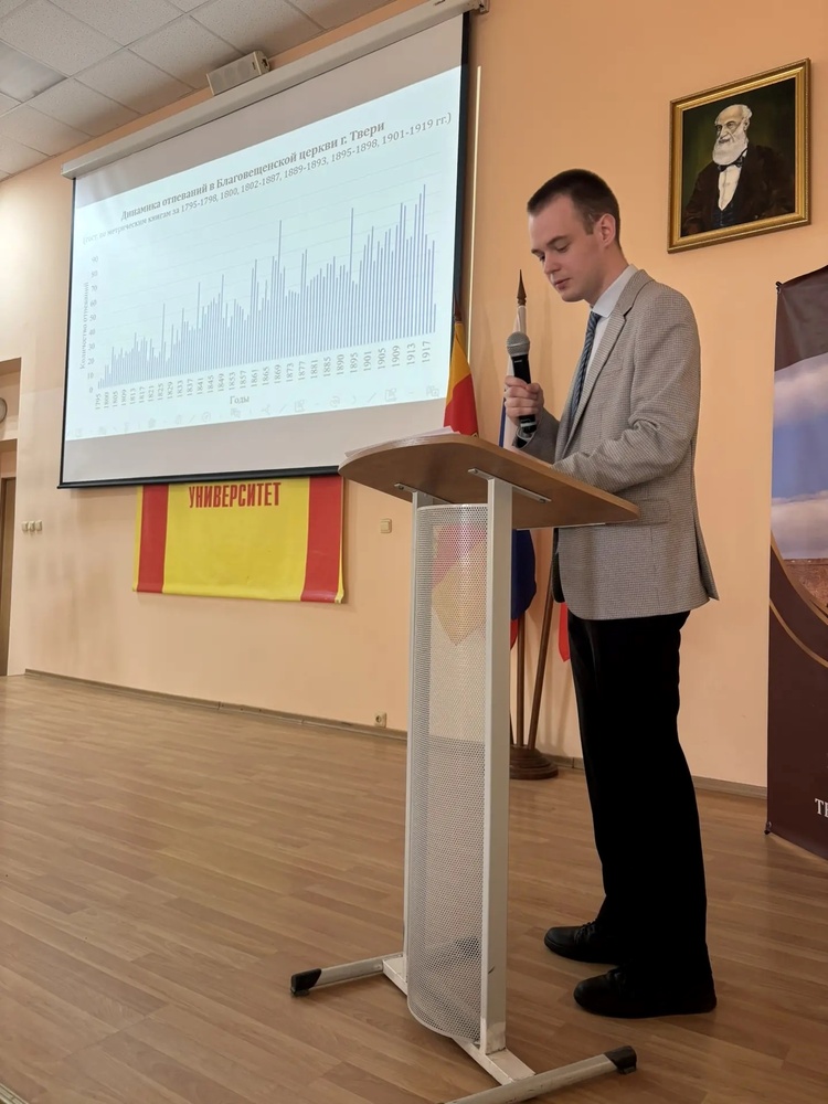 На конференции сотрудники исторического факультета познакомили широкую общественность с результатами своих исследований, проводившихся в рамках Соглашения № 1 от 27.11.2025 г. Тверского государственного университета и Министерства молодежной политики Тверской области о предоставлении гранта из областного бюджета Тверской области на реализацию мероприятий, направленных на проведение исследований по изучению истории Волынского кладбища г. Твери.